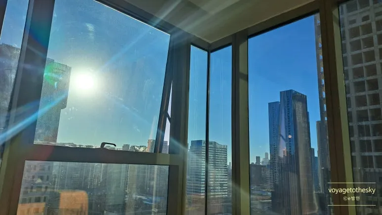 방 하나는 통창이다. 내가 빌린 곳보다 좀더 비싼 맞은편 호실들은 통유리로 오션뷰를 볼 수 있는 구조.