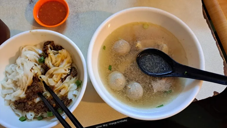 6주간 말레이시아로 출장 왔고, 동료들한테 여기 맛있다고 추천받아서 쉬는 날 혼자 먹으러 왔다는 미국인 여자 & 이 근방에 살고계시고 일주일에 한번씩은 여기 국수 먹는다는 현지인(화교) 할아버지와 합석하고 먹었다. 디저트로는 두유를 먹는다.
