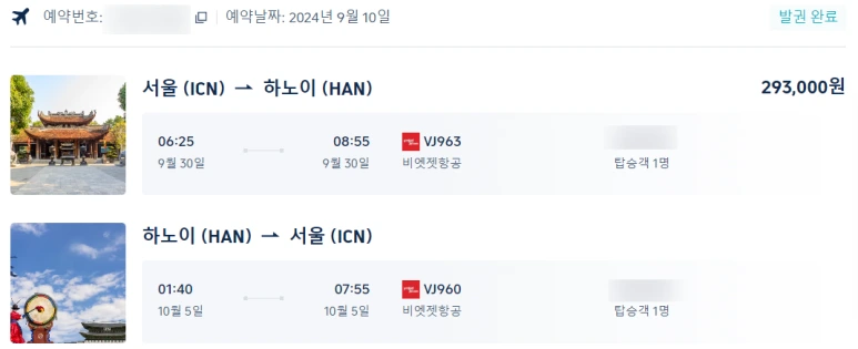 29만 3천원, 황금연휴기간 치고 생각보다 서울-하노이 왕복표가 비싸지 않아서 덥썩 지른다.