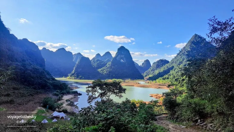 파란 하늘 아래의 카르스트지형, 초록색 석회암 산들은 동화속 풍경같은 느낌을 주었다.