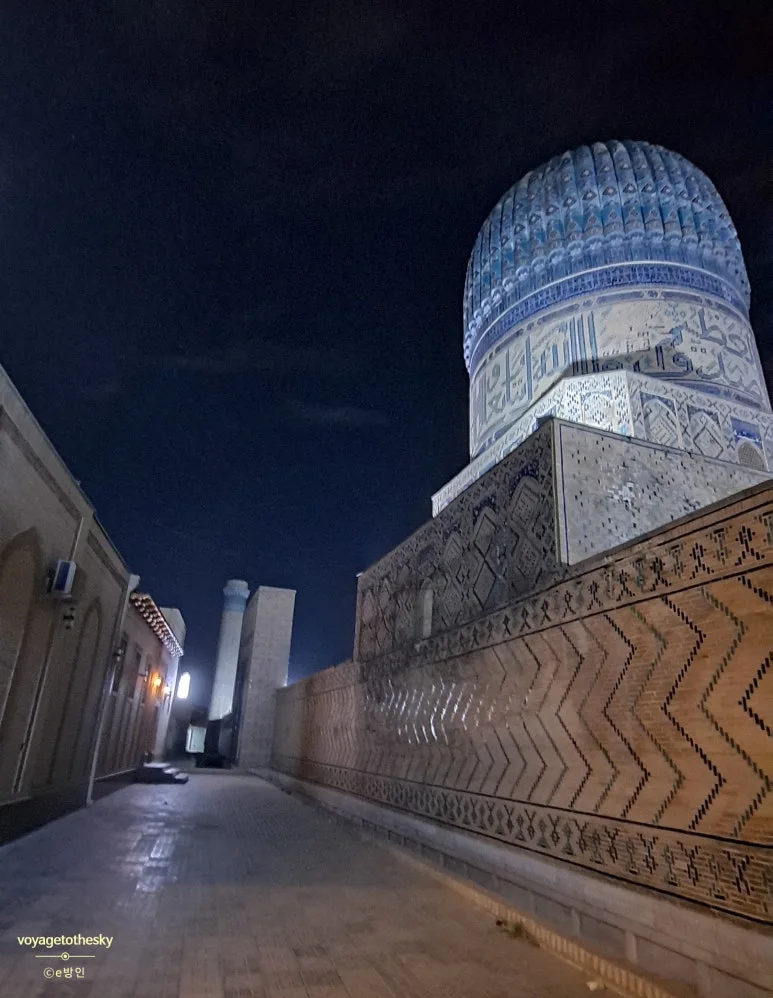 해가 져서 시원하고 조용한 산책 우즈베키스탄 사마르칸트 레기스탄 광장 근처의 길