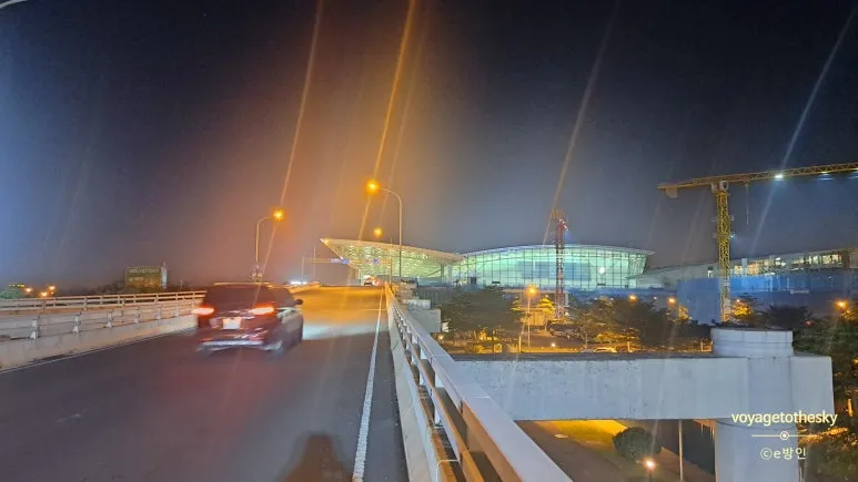 마지막 그랩바이크를 타고 하노이 노이바이공항까지 30분을 달린 뒤, 오토바이가 주차할 수 있는 곳에 내린 후 공항으로 걸어 들어가는 길.