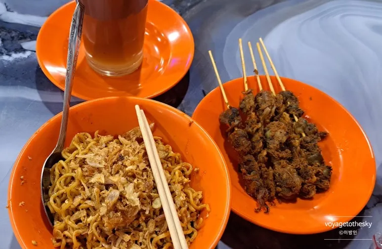 저녁은 근처 와룽에서 미고렝 + 해산물사테로 해결. 맛있었는데...