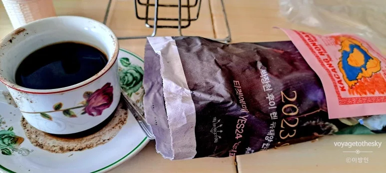 앙꼿 정류장은 카페를 겸하고 있었는데, 역시 여기도 사장님 친인척이 하는 곳이었다. 커피를 마시고 땅콩을 까먹는데, 어째 포장지가 한국 신문지다. 대체 왜?