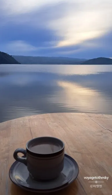 외딴 호숫가의 홈스테이에서의, 어쩌다 혼자가 아니게 된 두번째 아침. 정말 환상적인 일출이었다.