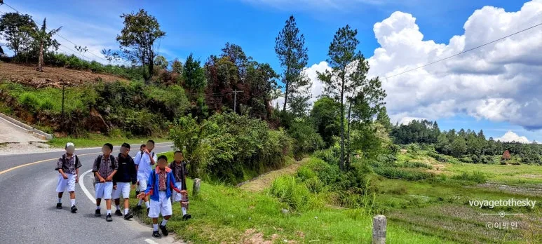 바탁인들이 있는 지역의 교복은 전통 바틱문양 셔츠 + 반바지다. 크리스찬들이라서 여자들도 히잡은 쓰지 않는다.