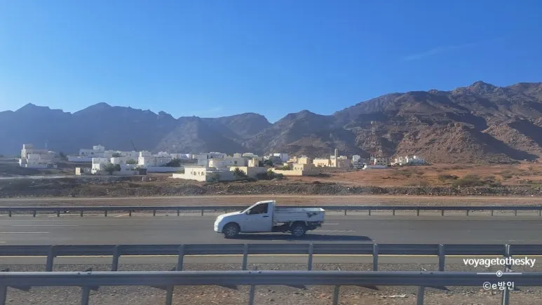 무단횡단하면 지름길이 나오지만, 무서워서 포기하고 시내버스를 타고 azaiba bus station 으로 갔다.