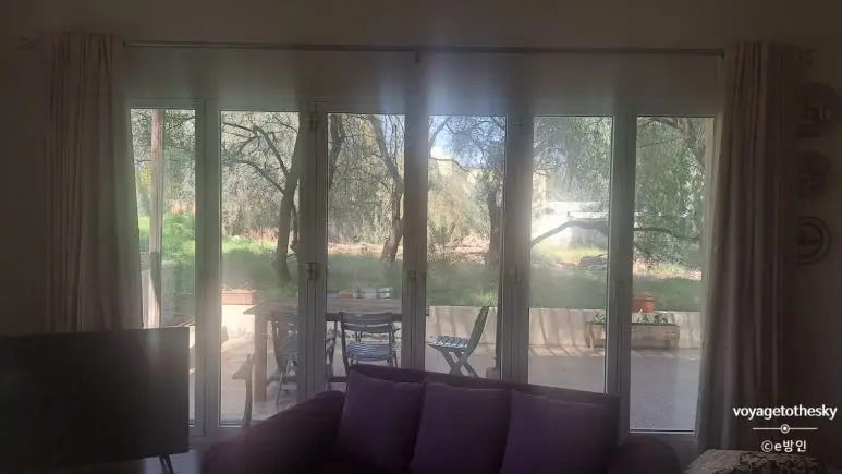투룸 단독주택을 개조한 숙소의 방 하나를 빌리는 개념이었고, 햇살좋고 정원이 바라보이는 거실은 아늑한 느낌이었다. 나머지 방 하나는 인도인가족여행자 세명이 썼다.