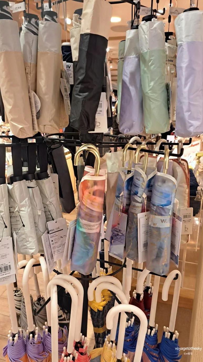 하카타 한큐백화점 1층에 초경량양우산 WPC의 매장이 있다. 디자인도 색상도 정말 다양했지만, 정작 사게 된 것은 왼쪽 가장 작고 심플한 양우산. 3만엔을 좀 넘는 가격이었는데, 태풍을 버텨냈다.