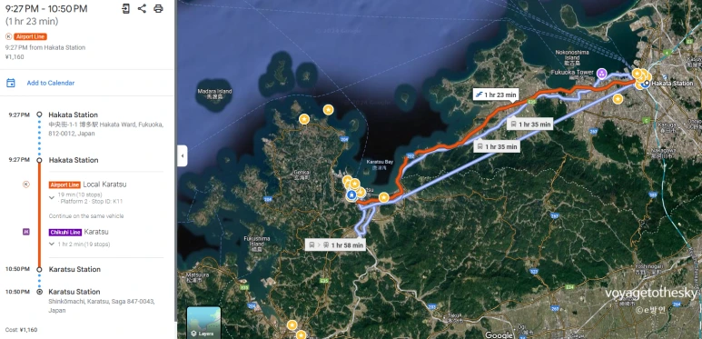 후쿠오카 하카타역에서 다시 카라츠역으로 가는 지하철을 탄다.