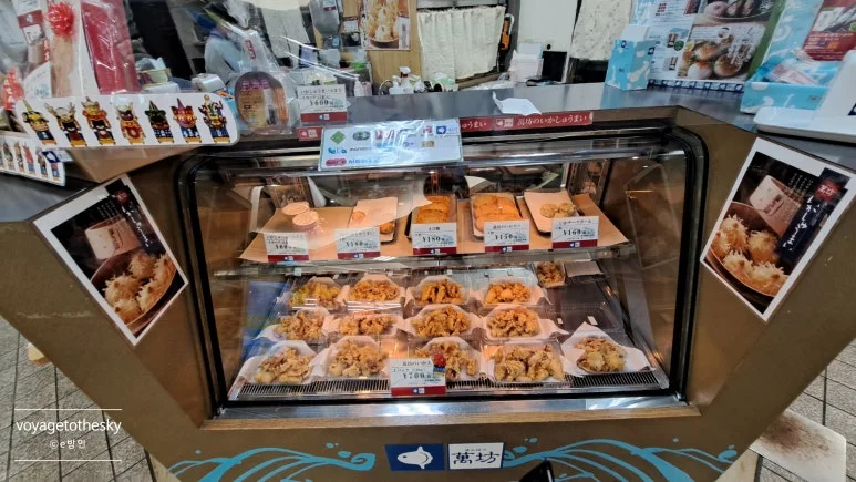 역에서 오징어고로케 (다리를 튀긴 양 많은건 700엔, 손바닥보다 약간 작은 크기의 고로케는 1800엔) 를 사서 먹었다. 맛있었다.