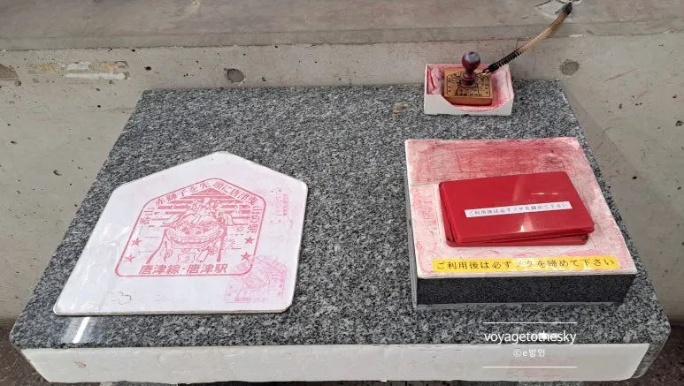 카라츠역에서는 요런 기념 스탬프를 찍을 수 있다. 이걸 여권에 찍는 짓은 절대 하지 말아야 하는 일 (훼손여권으로 판정되고 미국 태국 베트남 등등에서 입국거부될수있음).