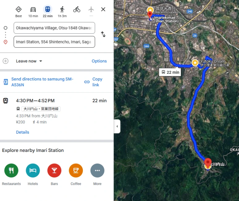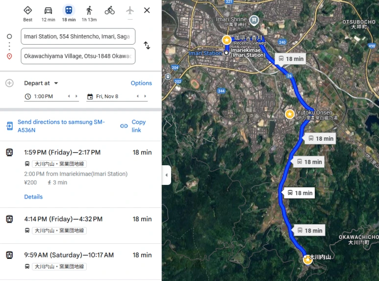 이마리역에서 오카와치야마 도자기마을까지 버스로 간다면 20분 정도 걸리고,