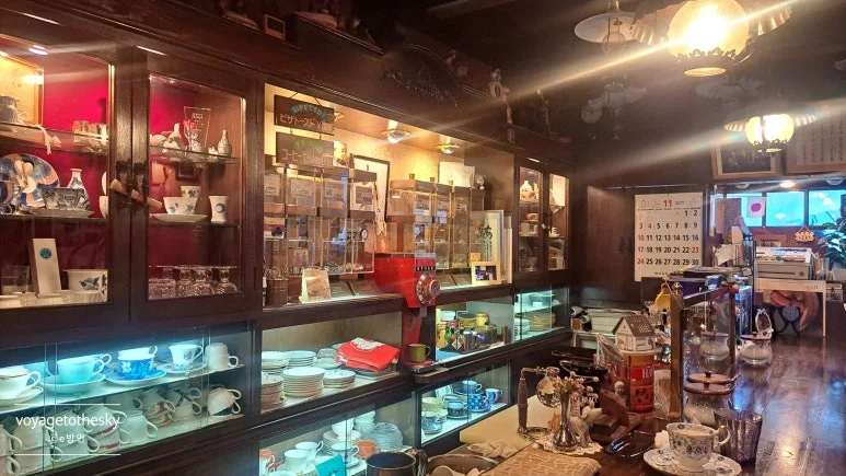 커피는 여러 원두를 블랜딩한 것을 저런 사이폰으로 내려주신다. 신사분께서 사가현을 여행하는 감상을 물어보았는데