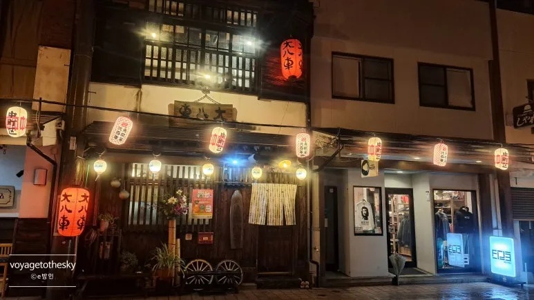 클래식한 이자까야 옆에 좀 힙한 체게바라 있는 옷가게가 있는것을 보면서 호스텔로 짐을 찾으러 갔다.