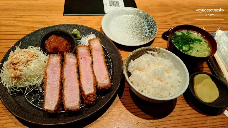 카라츠로 돌아와서, 구글 평점이 4점을 넘는 돈카츠 식당에 가서 밥을 먹었다. 밥과 미소시루에도 돈을 따로 내야하는데, 돈카스 1400엔, 밥 200엔, 미소시루 250엔이었다. 도합 1850엔이니 저렴하지 않은 가격이긴 하다.