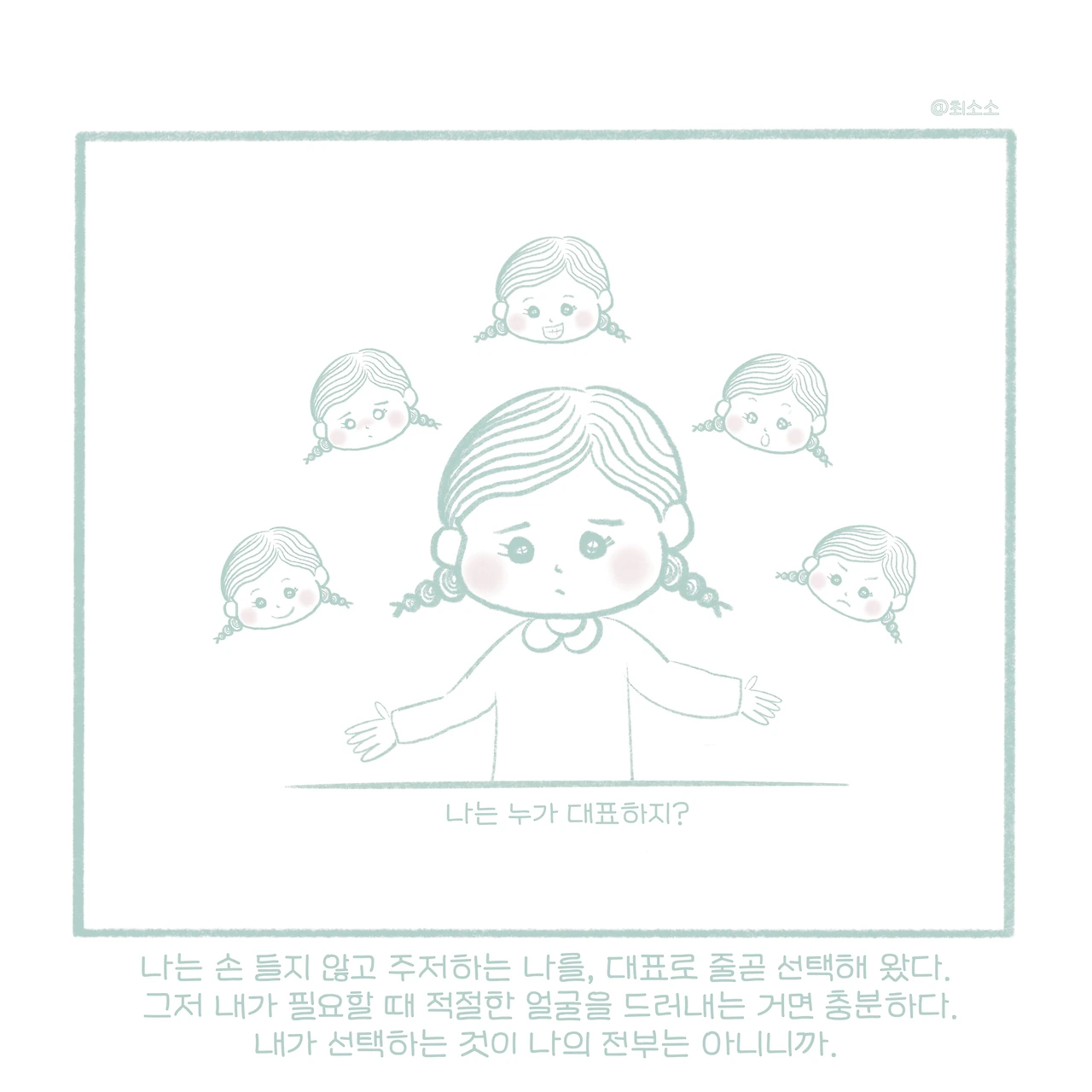 나는 손 들지 않고 주저하는 나를, 대표로 줄곧 선택해 왔다. 대표라는 단어에는 여러 얼굴이 숨어 있다. 요즘 말로 본캐와 부캐가 있듯, 내가 선택하는 본캐나 부캐가 나의 한 부분을 대변해 주기도 하고 그게 꼭 나의 전부는 아닌 것처럼.