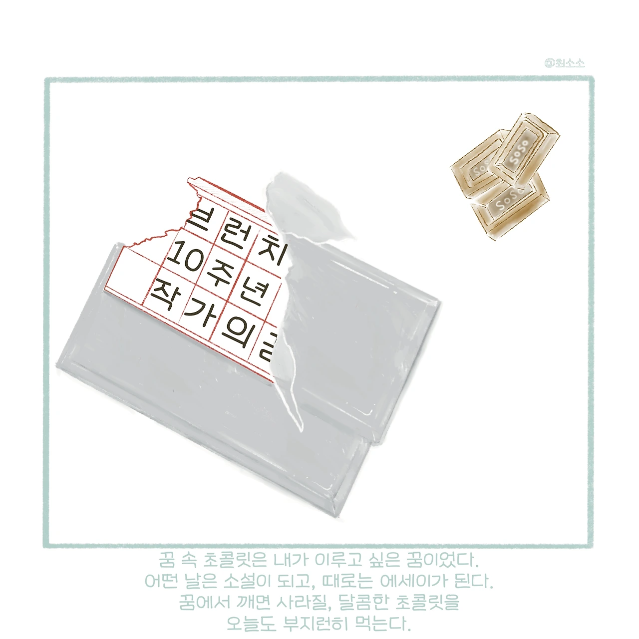 그렇게 현실에서 내 초콜릿은 어떤 날은 소설이 되고, 때로는 에세이가 된다. 내가 경험한 꿈과 현실, 그리고 그 사이에서 느낀 모든 감정들이