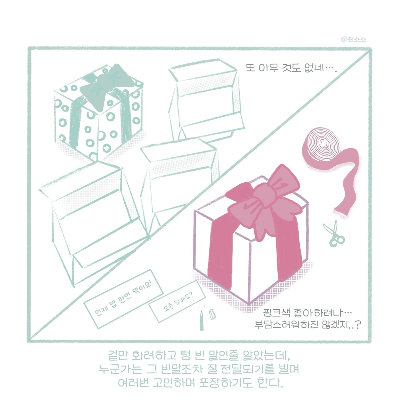 그 당시, 나는 빈말을 겉만 번지르르한 선물과도 같다고 여겼다.사람들은 예정돼있지 않은 미래를 그럴싸한 말로 포장해서 타인에게 덥석 쥐어준다. 훗날 열어보면 그 속은 텅 비거나 포장지보다 못한 것들이 잔뜩 들어있을지도 모를 일이다.