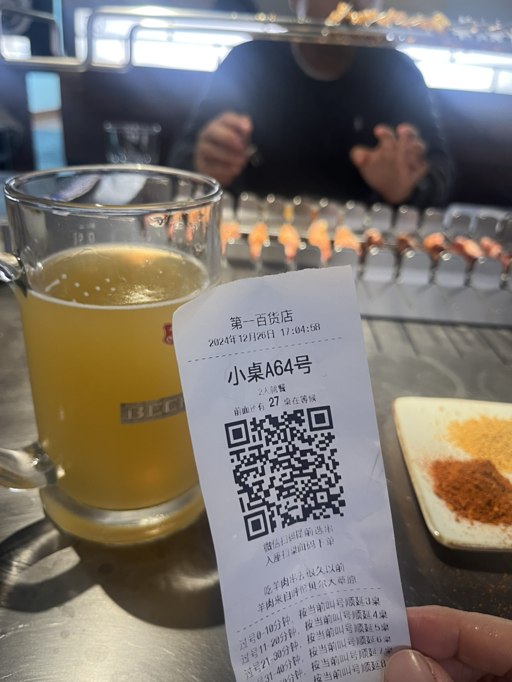 상하이에서 기억에 남는 식사 중 한 곳인 양꼬치 가게도 방문했는데, 무려 두 시간 반을 기다려서 입장했다. 식당 줄 서기도 페이앱으로 된다는데 그건 어떻게 하는지 모르겠어서 무지성으로 기다린 결과는 대성공! 이거 먹으러 다시 가고 싶을 정도다.