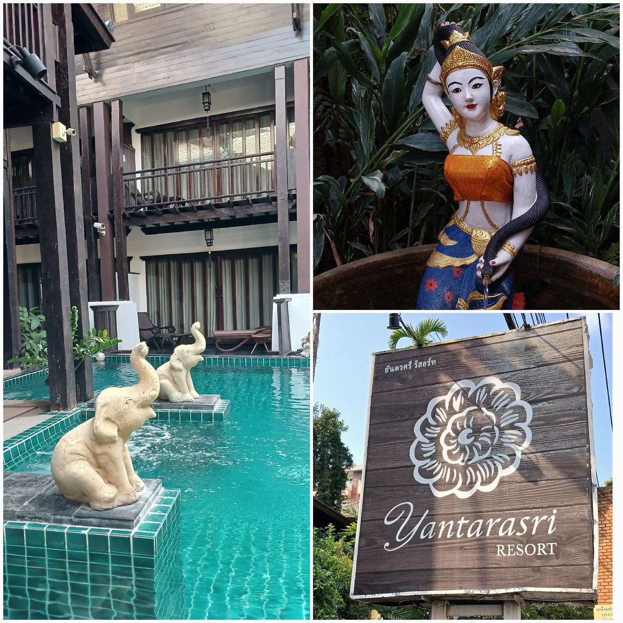 머무는 숙소에서 조금 걸어가다 발견한 얀타라스리 리조트 (Yantarasri resort). 문은 열려있고 아무도 가드하는 사람이 없어 내 집 들어가듯이 자연스럽게 안으로 발걸음을 내디뎠다. 고즈넉하고 평화로운 분위기. 온통 나무밖에 없다. 나무로 지어진 리조트 건물 가운데 있는 수영장, 리셉션 데스크에 있는 직원은 우리를 보더니 평화롭게 미소짓는다. 밖에는 마사지에 대한 메뉴와 가격이 나와 있다. 온통 마사지샵뿐이라 어디를 가야 할지 몰랐는데 이 리조트에서 받고 싶다는 생각이 들었다. 가격도 한국의 반값이라 덜컥 예약해버렸다.