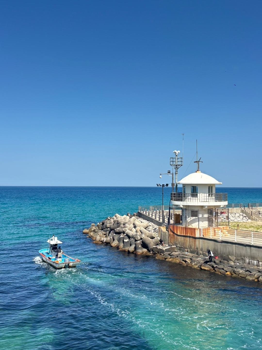 저녁에 식당을 알아보니 거의 문을 닫아 호텔 1층에 있는 주막집을 찾았다. 간이 세고 강한 두부김치와 바싹 새우전을 술 없이 저녁으로 먹었다. 뭘 해도 즐거웠다. 푹 자고 다음날 일어나니 바다는 더 파랗고 예뻐졌다. 하늘, 바다 온통 푸르르고 맑았다. 그 사이에 불순물은 들어갈 수 없는 듯 나도 아무런 걱정도 근심도 없어졌다. 갑자기 강릉에서 살고 싶은 마음이 들 정도로 갑자기 강릉 러버가 되었다. 딸은 나보다 증상이 더 심했다. 우리가 이렇게 좋은 곳을 왜 모르고 살았냐며 즐거워했다.