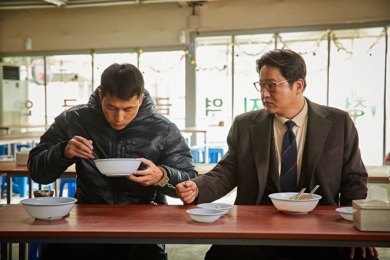 작중 철우와 철우는 허기에 져 잔치 국숫집을 찾는다. 수갑에 손이 묶여 자유롭지 못한 북쪽 철우에게 남쪽 철우는 그의 한 쪽 손의 수갑을 풀어주며 자신의 오른손에 채운다. 그리고 나란히 앉아 국수를 들이킨다. 우리는 같은 편이라면서. 북쪽 철우는 오른손잡이고 남쪽 철우는 왼손잡이다. 나란히 앉아 국수를 먹는 둘의 모습은 감독의 의도가 빤히 보이지만 결코 작위적으로 보이진 않는다.
