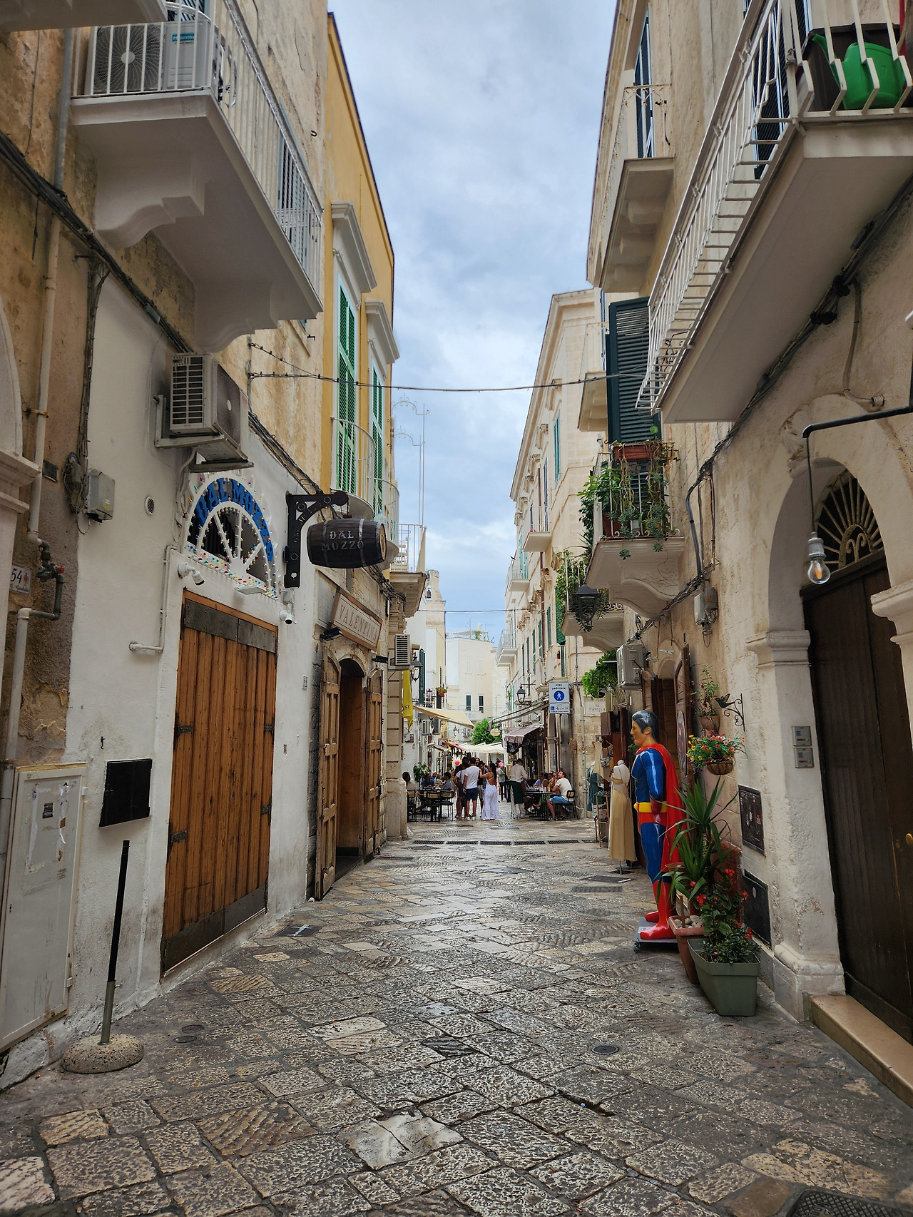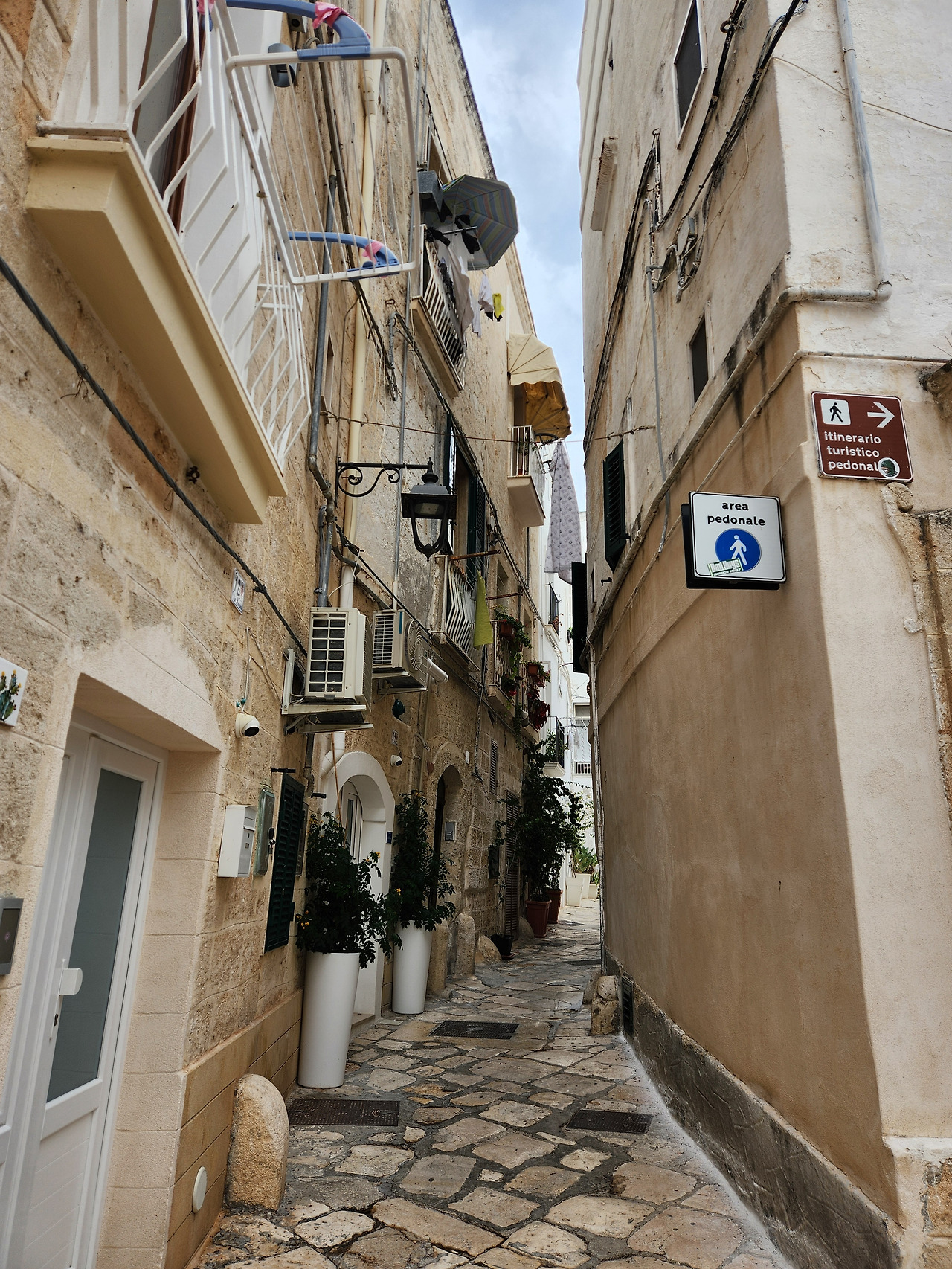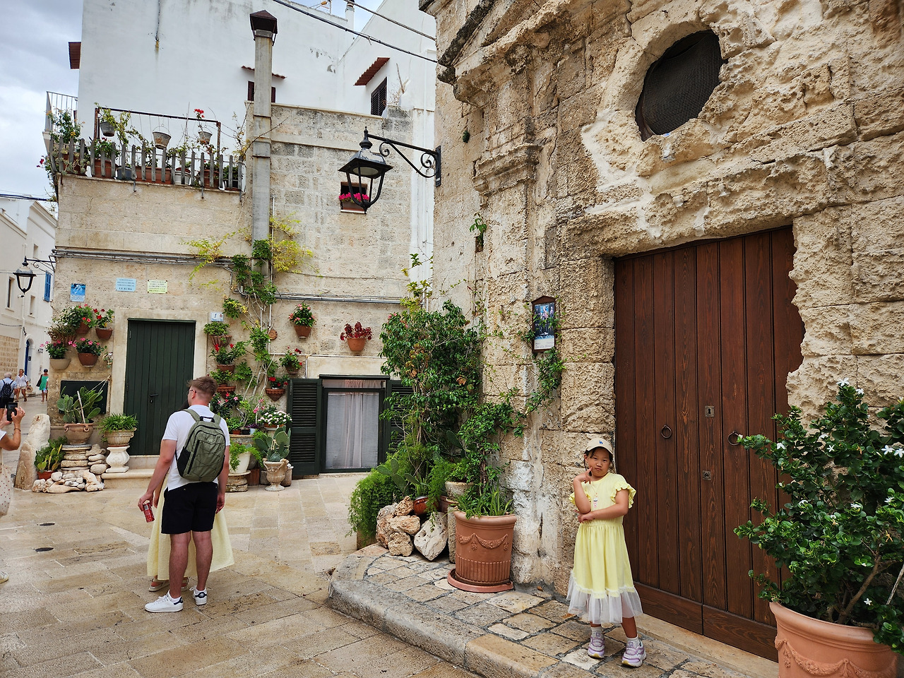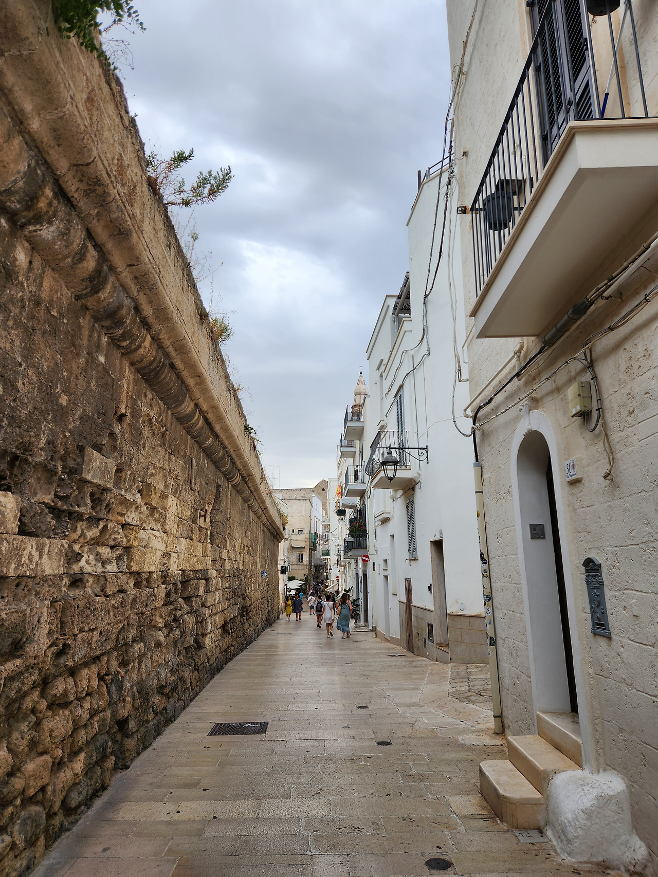 식사를 마칠 때쯤 비가 그쳤다. 우린 모노폴리 마을을 가볍게 산책해 보기로 했다. 우리가 들렀던 식당에서 더 안쪽으로 들어가자 좁은 골목과 작은 광장으로 이뤄진 아담한 모노폴리의 속살이 드러났다. <우리만의 사적인 아틀란티스>에서 작가님이 모노폴리 예찬을 하셨는데 그 말이 무슨 뜻인지 이해됐다. 그동안 크고 작은 이탈리아 마을을 돌았지만 모노폴리는 그곳들과는 또 다른 매력을 품고 있었다. 훨씬 아담하고 옹기종기하고 소박한 얼굴이었다. 폴리냐노 아 마레가 반에서 제일 예쁘고 화려한 친구라면 모노폴리는 작고 눈에 잘 띄지 않지만 안경알 속을 자세히 보면 매력적인 눈을 가진, 그런 친구 같았다.