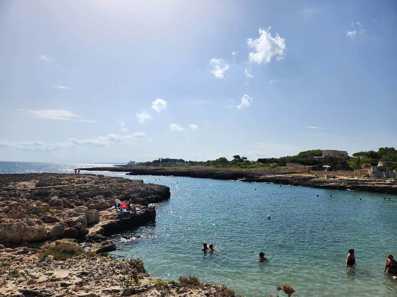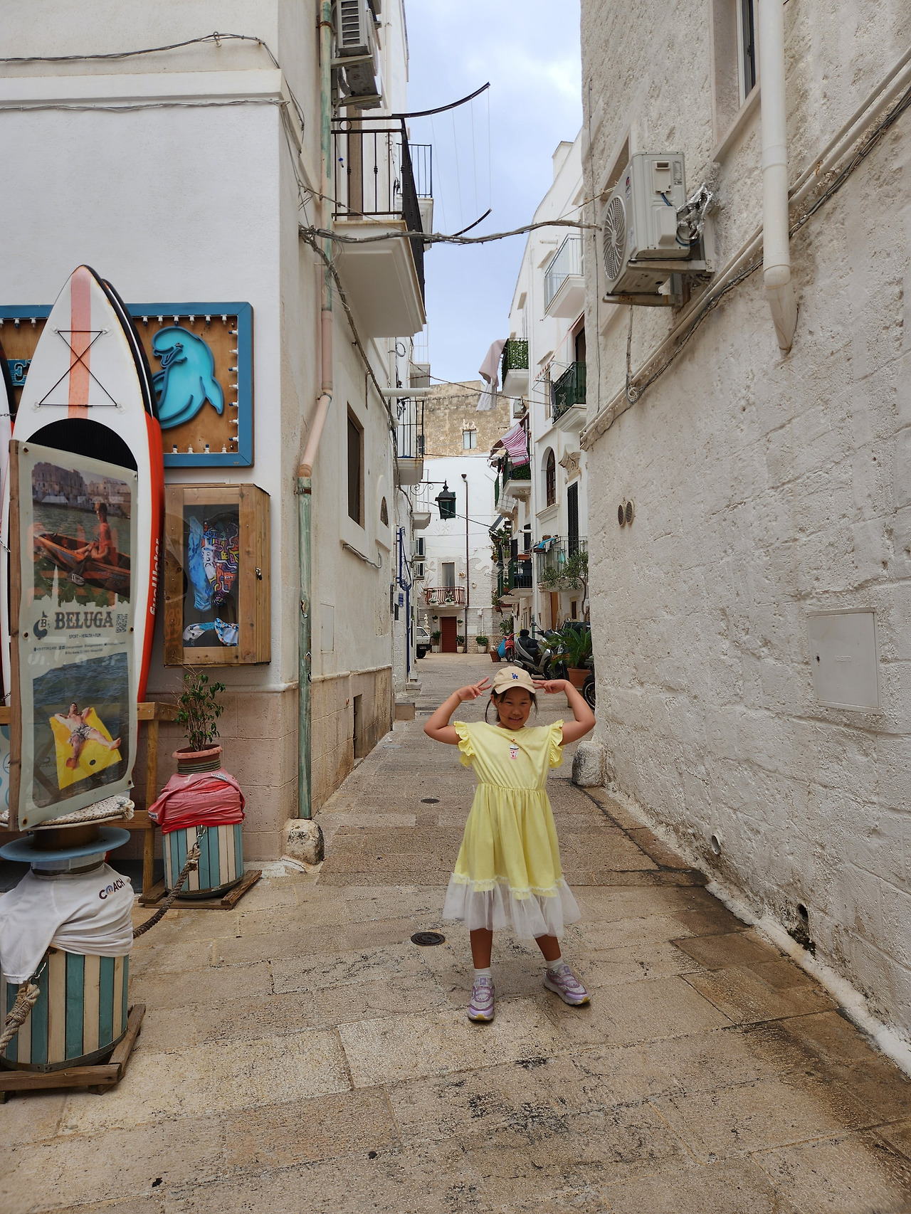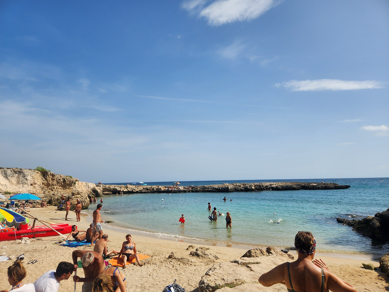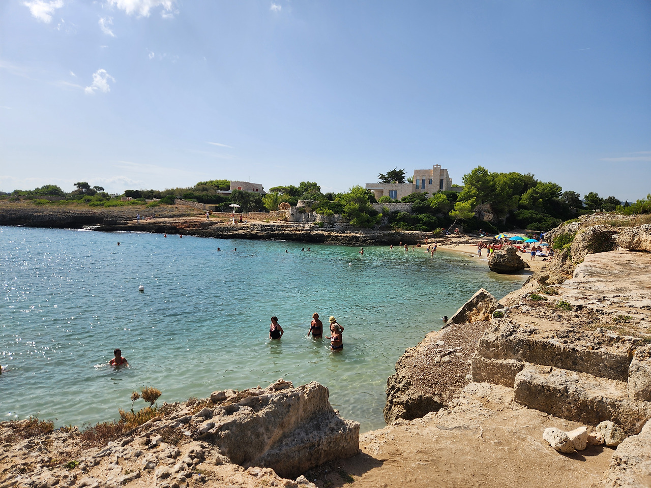 1일 1수영을 하기로 했으니 오늘은 구글지도로 눈여겨봤던 다른 해변으로 가보기로 했다. 폴리냐노 아 마레에서 남하하여 모노폴리를 좀 더 지나면 나오는 '포르토 마르자노 해변(Porto Marzano Beach)'은 수심이 낮고 비교적 해변 바닥이 험하지 않아서 유라와 놀기에 적합한 곳이었다. 차로 20분 남짓 거리라서 오전에 물놀이를 하고 오후에 모노폴리에 들렀다가 폴리냐노 아 마레로 돌아오기로 했다.