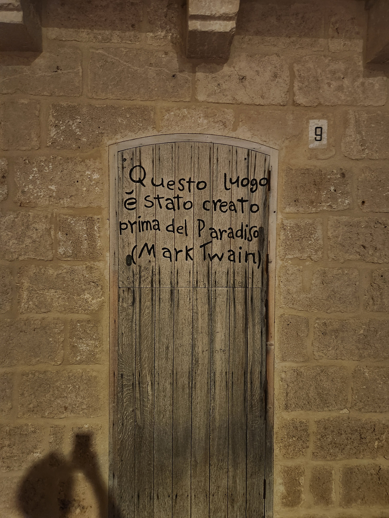 폴리냐노 아 마레의 밤을 산책하는데 바닷가 풍경이 보이는 어느 조그만 바 근처의 오래된 나무문에 이런 글귀가 쓰여 있었다. "Questo Luogo è stato creato prima del Paradiso (Mark Twain)” 스마트폰으로 번역기를 돌려 보니 이런 뜻이었다.