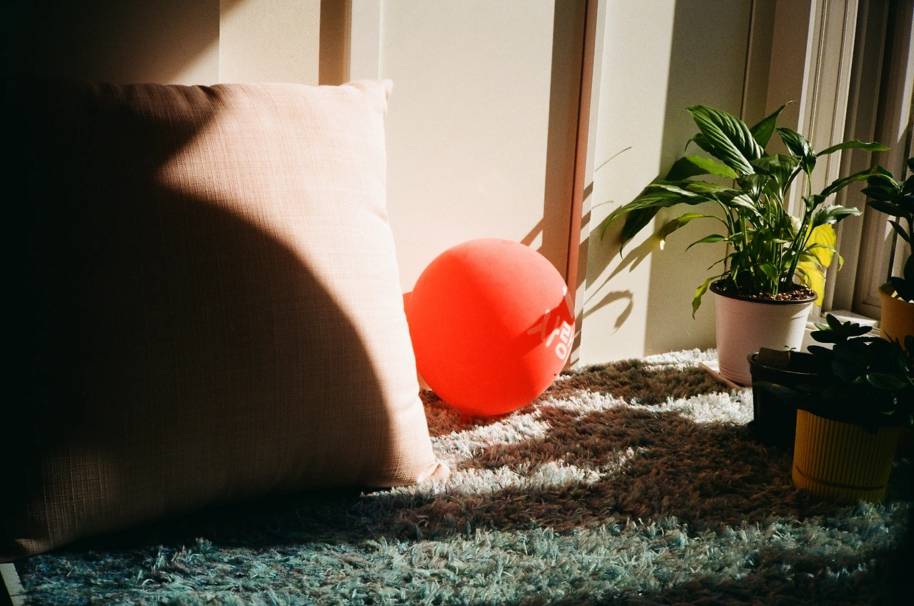 볕이 좋은 날 집에서 굴러다니던 풍선 위로 햇빛이 쏟아졌습니다. 그 모습이 예뻐서 사진을 찍었어요. 딸이 어디선가 받아온 건데 몇 번 갖고 놀다가 싫증 나서 거실 한 구석에 혼자 남겨진 녀석이죠.