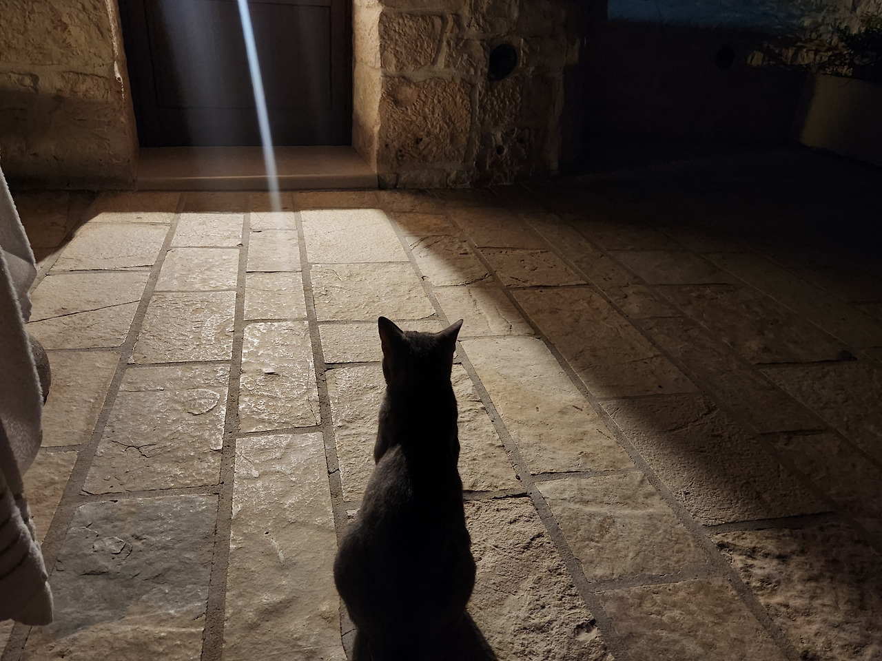 세탁실에서 나오니 어김없이 어디선가 고양이가 나타나 따라온다. 아마도 이 녀석은 하루 종일 세탁실 근처에 숨어있다가 누가 세탁실에 들어가기만 하면 나타나서 주위를 맴도나 보다. 결국 객실까지 따라온 녀석은 방 안까지 들어와서 같이 놀자고 야옹거렸다.