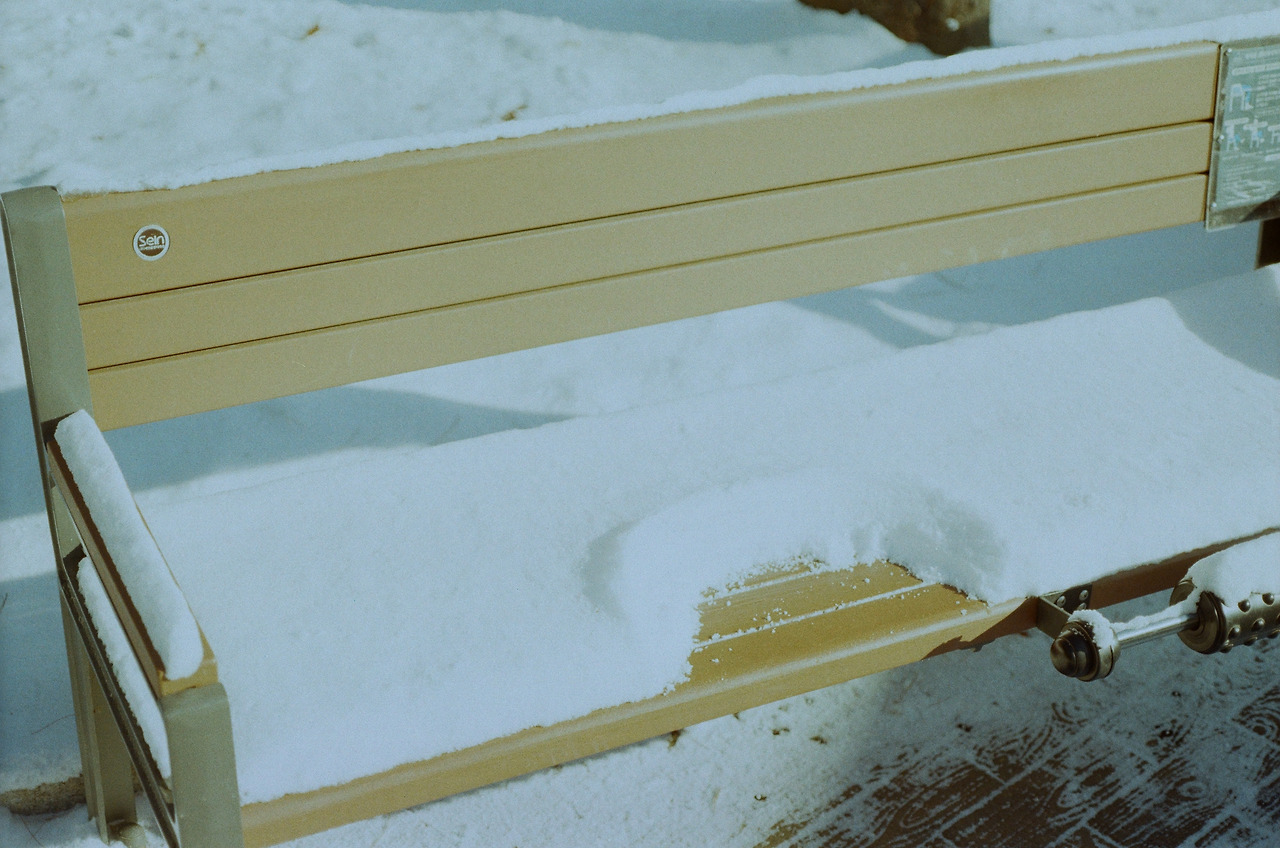 12월 초에 눈이 엄청 많이 왔었죠. 밤새 눈이 많이 쌓인 모습에 괜히 신이 나서 아이를 등교시키고 전 그대로 카메라를 들고 산책을 했습니다. 여기저기 신나게 찍다 보니 어느새 36장짜리 필름 한 통을 다 써버렸더라고요. 그런데 현상을 하고 보니 노출을 잘못 잡아서 거의 모든 사진이 저렇게 푸르스름하게 바래버렸죠. 많이 속상했지만 그래도 나름 감성 있네 하고 혼자 다독였습니다.