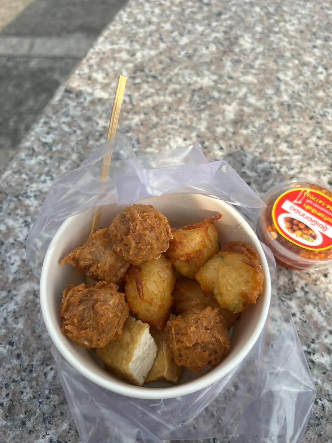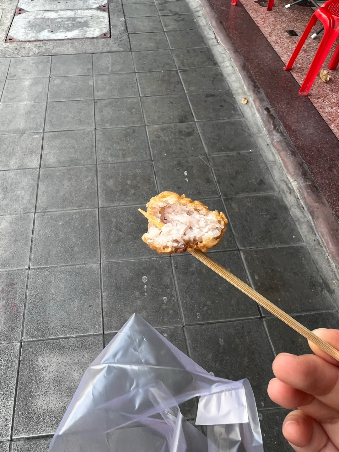 구글맵에 검색해 보니 '팁 마사이'라는 팟타이 맛집이 유명하다고 해서 열심히 햇빛을 맞으며 걸어갔다. 그런데 화요일은 휴무라고 하는 것이 아닌가. 마침 근처 식당들도 문을 다 닫아서 근처에 인기가 많은 타로 튀김 가게에서 튀김을 하나 사 먹고 현지 식당치고는 조금 비싼 '크루아 압손'이라는 곳을 갔다. 여기서 웃겼던 점은 나를 포함한 가게 손님들이 모두 한국인이었다. 아마도 식당들이 문을 다 닫아서 열린 가게 중 그나마 나은 곳으로 다 온 것 같았다. 조금 양이 많긴 했지만 새우 팟타이와 게살 오믈렛을 혼자 다 먹었다. 팟타이는 굵은 당면에 살짝 붉은색을 띠어서 살짝 매콤했고 새우도 엄청 컸다. 게살 오믈렛은 정말 폭신폭신했고 게살이 한 군데에 몰려있어서 조금 짰다.