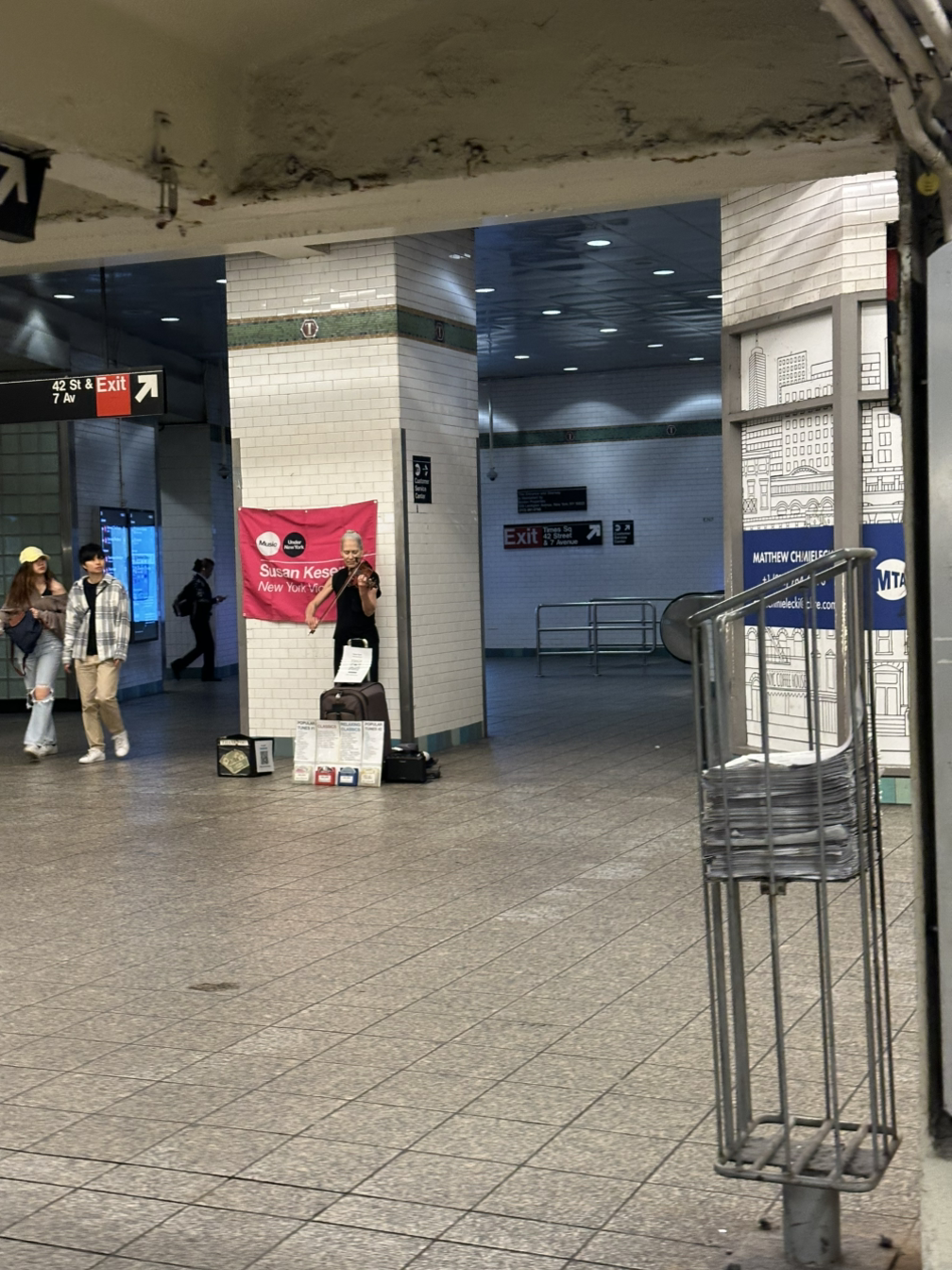 타임스퀘어에서 공연하는 사람들을 봤다. 뉴욕에 사는 사람도, 이렇게 공연을 하는 사람도, 관광객들도 모두 에너지가 넘쳐보인다는 것이 뉴욕의 큰 특징인 것 같다. 공연하는 중에도 '저 사람들 에너지가 좋다'라는 말이라든지, '여러분의 에너지를 나눠주시면 저희도 돌려드릴게요!'라든지 에너지라는 단어가 자주 언급됐다. 뭔가를 행복하게 하는 사람을 보면 절로 기분이 좋아지는데, 그럴 수 있는 기회가 많은 도시라고 느껴진다. 뉴욕의 긍정적이고 활기찬 에너지를 많이 많이 받아가야지! 벌써 밤 11시 반이다. 밖에서는 총소리인지 다른 소리인지 모를 위협적인 소리가 몇 번 들려와서 살짝 무섭기도 하다. 잘 잠들어서 시차적응도 잘 하고, 내일도 재밌게 놀 수 있기를!