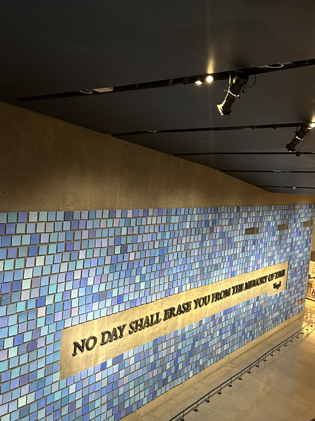아무튼, 먹구름 가득한 날씨를 뚫고 911 메모리얼 뮤지엄도 보고, 파크도 구경했다. 비극적인 참사의 기억해야 하는 일부는 보존하는 방식으로 뮤지엄을 만든 방식이 대단하다고 생각했다. 참사의 순간들을 직접 마주하고, 희생자들의 개인적인 사연과 물품들을 마주하니 굉장히 슬펐다. 각자가 기억하는 그 날의 하늘 색으로 그 날을 기억하는 전시 꾸린 것도 감동이었다. 메모리얼 파크의 추모 건축물은 방송에서 많이 봤는데, 실제로 보니까 훨씬 더 멋지고 압도되고 슬픈 느낌이었다. 역시 실제로 보는 경험이 중요하다!