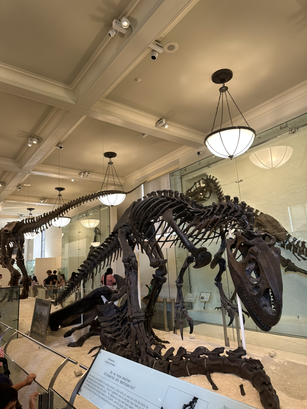 두 번째 공룡관. 정말 난생 처음 보는 류의 전시였다. 뉴욕 자연사 박물관은 화석으로 굉장히 유명하다. 19세기~20세기에 미국에서 많은 공룡 화석이 발견됐다. 자연사 박물관은 이런 화석을 수집하기도 하고 연구/후원하는 기관이었기에 공룡관에 정말 많은 화석이 모여있었다. 자연사 박물관의 가장 대표적인 화석이자 어릴 때 책에서만 보던 티라노사우르스 렉스도 보고, 다양한 공룡 및 동물의 화석을 봤다.