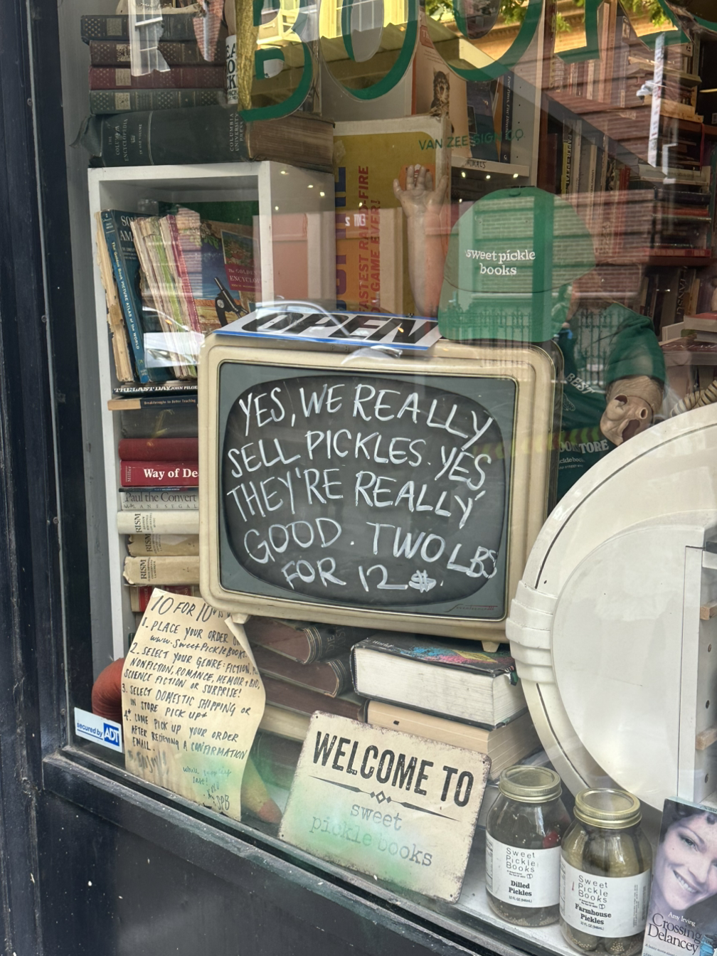 스위트 피클 북스! 중고 책 한 권을 가져가면 피클과 교환해주는 아주 귀여운 서점이다.
