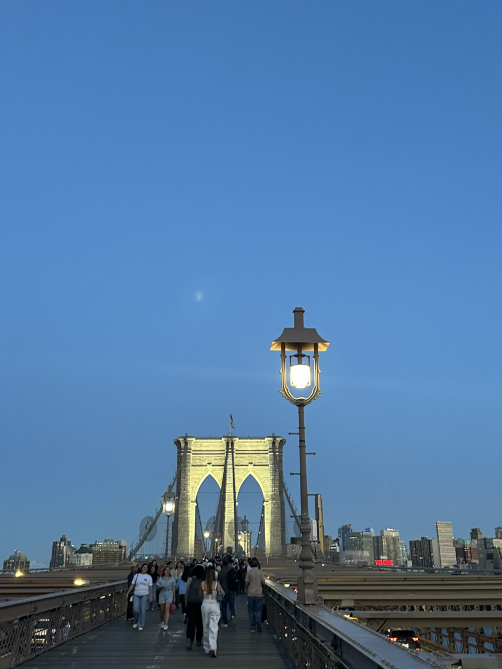 숙소에 한 번 들어오니 나가기가 싫어서 브루클린 브릿지 그냥 가지 말까..하다가 나왔는데 가길 넘 잘했다. 일몰 시간에 럭키하게 딱 맞춰 도착해서 넘넘 예쁜 분홍빛 보라빛 브루클린 브릿지와 맨해튼 하늘을 볼 수 있었다. 사진에는 1도 담기지 않는다.. 하늘이 너무 너무 예뻐서 온 몸에 소름이 돋았다. 넘 행복했던 순간! 진짜 미국에 왔구나 하는 순간이었다.