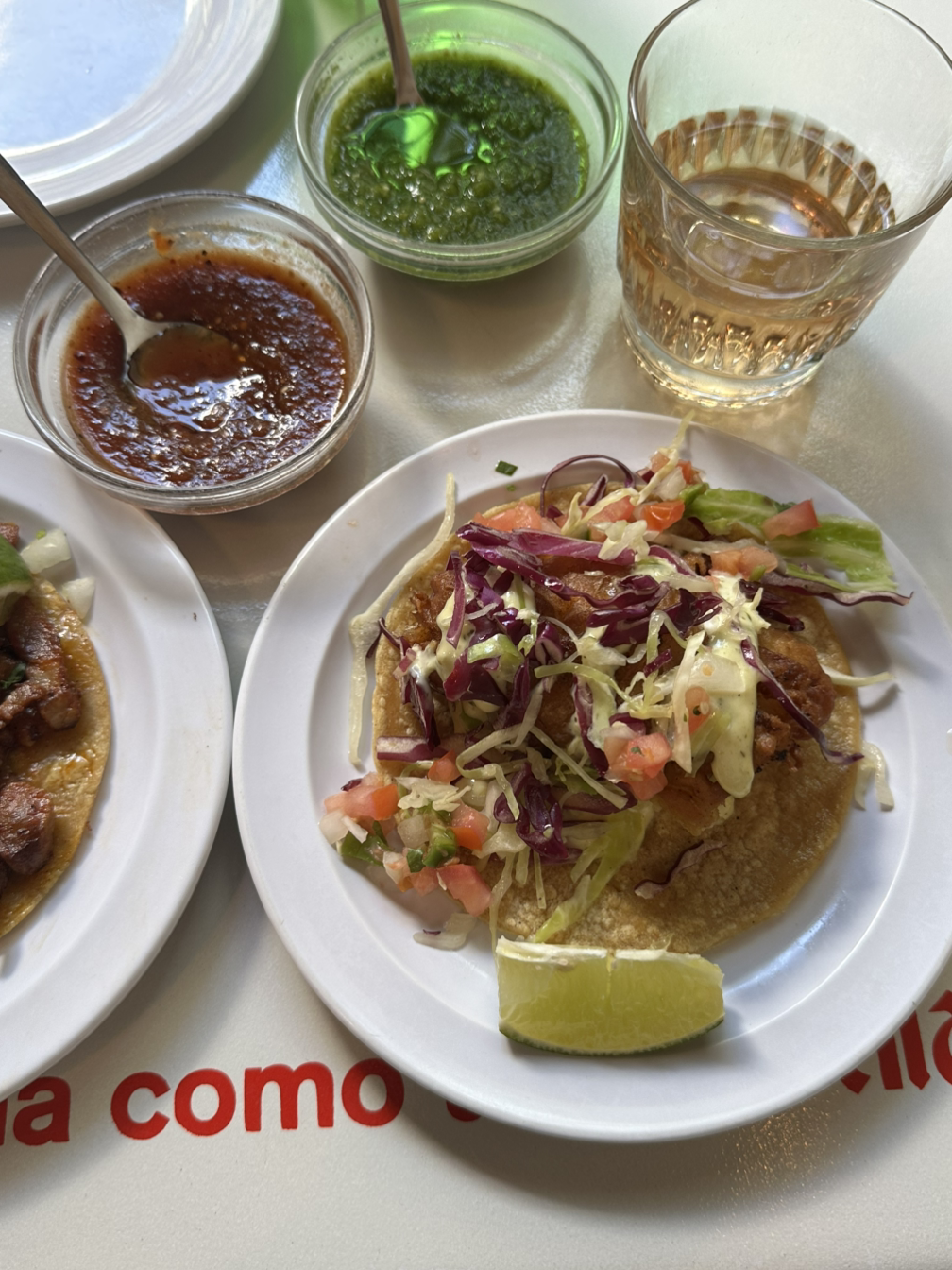 점심 또 타코! 역시 타코 중의 타코는 피시 타코야..! 로제 와인과 함께 먹는 점심 넘 행복했다. 우리나라도 이렇게 간단한 타코 바 같은 게 많이 생기면 좋을텐데.. 그냥 간단하게 타코 두 조각만 먹어도 꽤나 만족스러운 식사가 된다.