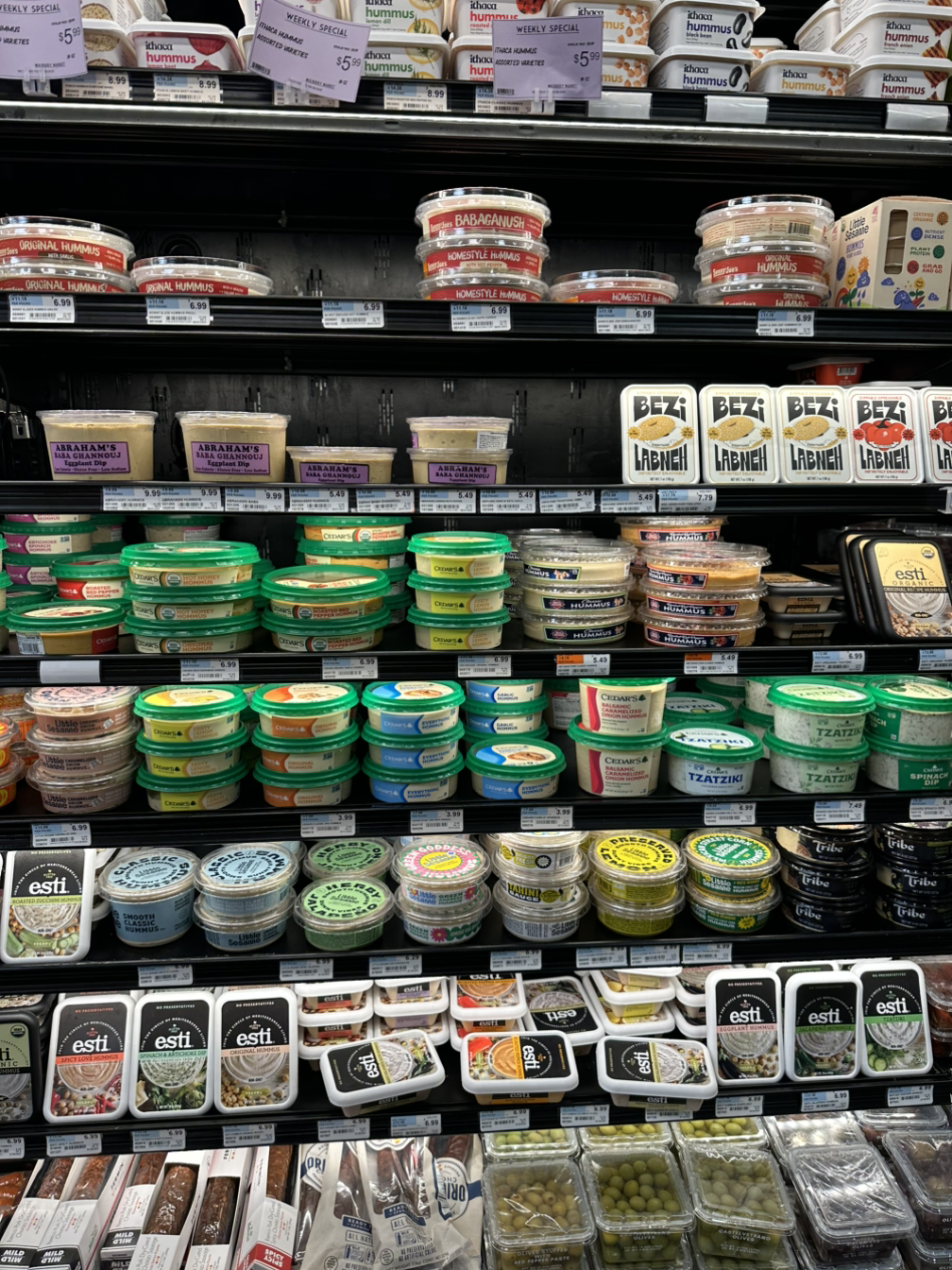 제일 부러웠던 건 후무스와 또띠아를 종류별로 한 코너에 판다는 것이었다. 우리나라에도 이렇게 팔면 집에서 타코를 해먹거나 후무스랑 팔라펠을 넣은 피타 브레드 샌드위치를 자주 해먹을텐데 ㅠ ㅠ 부럽다..
