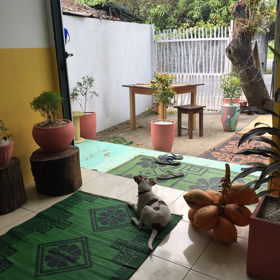 열심히 구경하고 배고파서 실론 슬라이더스 라는 가게에 갔다. 이 날은 스리랑카의 독립 기념일이나 내셔널 데이여서 안 연 가게들이 많았다. 이 가게 역시 서양인이 하는 곳. 일층에는 서핑 보드, 수영복, 소이 캔들 등등 여러 기념품들을 팔고 있었는데 완전 서양인을 타겟으로 한 듯 매우 비싼 가격대였다. 그 와중에 어떤 미국인은 서핑보드가 정말 마음에 든다며 미국으로 배송해줄 수 있냐고 하더니 결국 사 갔다.