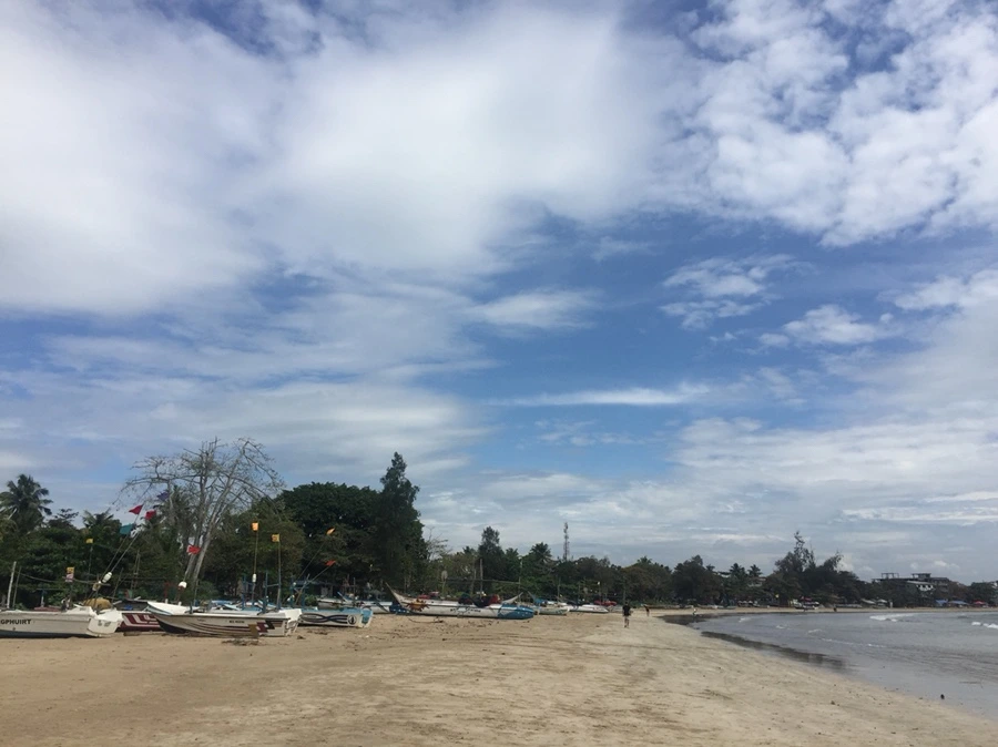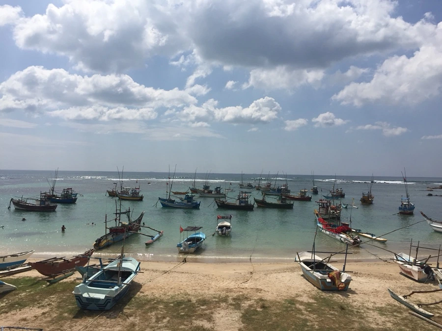 친구들은 아침부터 서핑을 하러가고, 나랑 언니는 fisherman’s bay 에 갔다. 웰리가마에는 우버에 등록된 차량이나 툭툭이 거의 없는 듯 잡히지 않았다. 심지어 타려면 intercity 차량을 타야한다고 뜬다. 어쩔 수 없이 도로로 나가서 툭툭을 잡아 탔다. 250을 주고 갔는데 엄청 큰 대문이 나와서 당황했다. 무슨 리조트인가? 했는데 fisherman’s bay라는 리조트고, 그 해변에 여러 배들이 사용하는 해변이 있는듯. 투숙객이 아니어도 방문 가능했다. 다른 관광지 같았으면 벌써 돈을 받았거나 사람이 많았을텐데 사람도 없고 좋았다. 인구밀도가 높은 곳에 산다는 것은 정말 많은 스트레스를 주는 일이구나 다시 한 번 깨달았다. 어딜 가든 사람에 치이지 않고 한적하게 보낼 수 있다는 것은 정말 좋은 일이다. 이 곳의 바닷물은 정말 깨끗하고 예뻤다. 구름과 하늘도 예뻐서 제주도에 온 것 처럼 행복했다. 왜 이 많은 배들이 이 곳에 둥둥 떠있기만 하거나 모래사장에서 쉬고 있는지는 알 수 없지만 이런 배들을 처음 봐서 신기했다. 배들이 쉬는 곳 같았다.