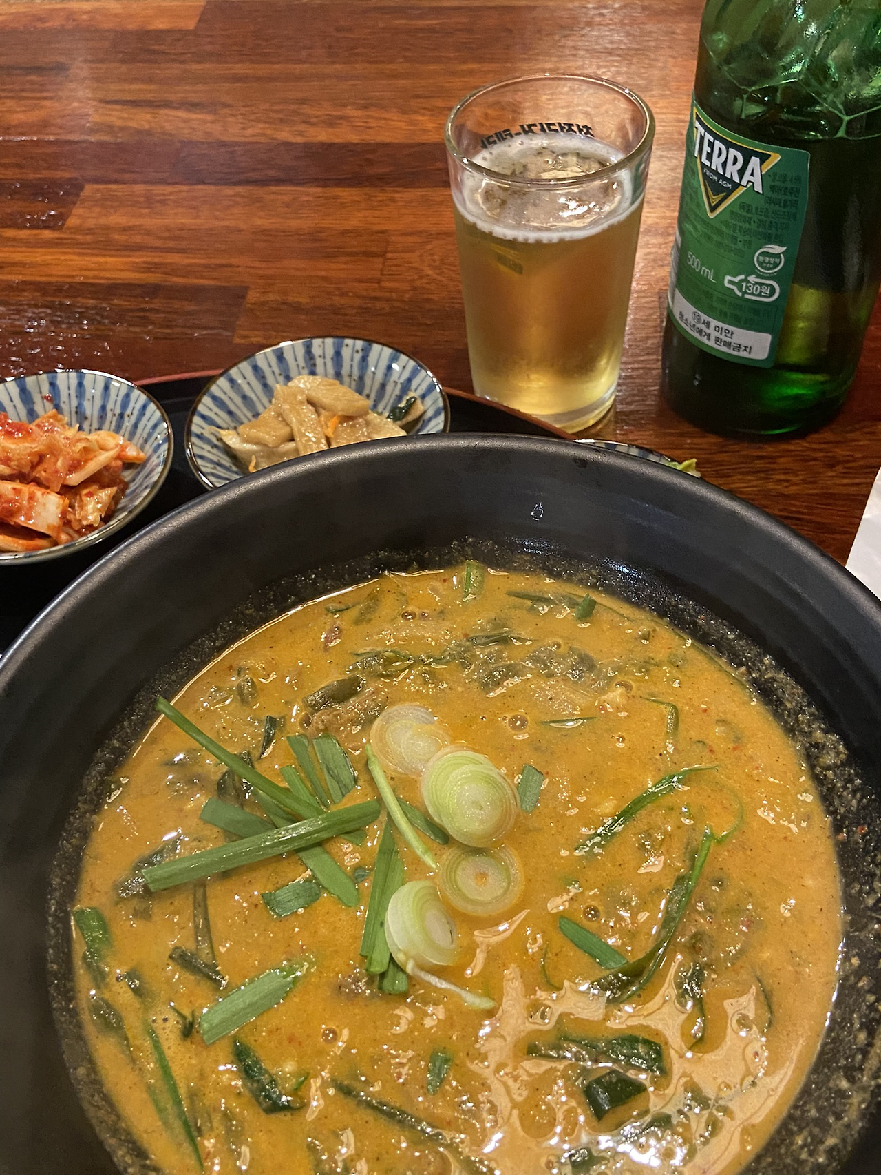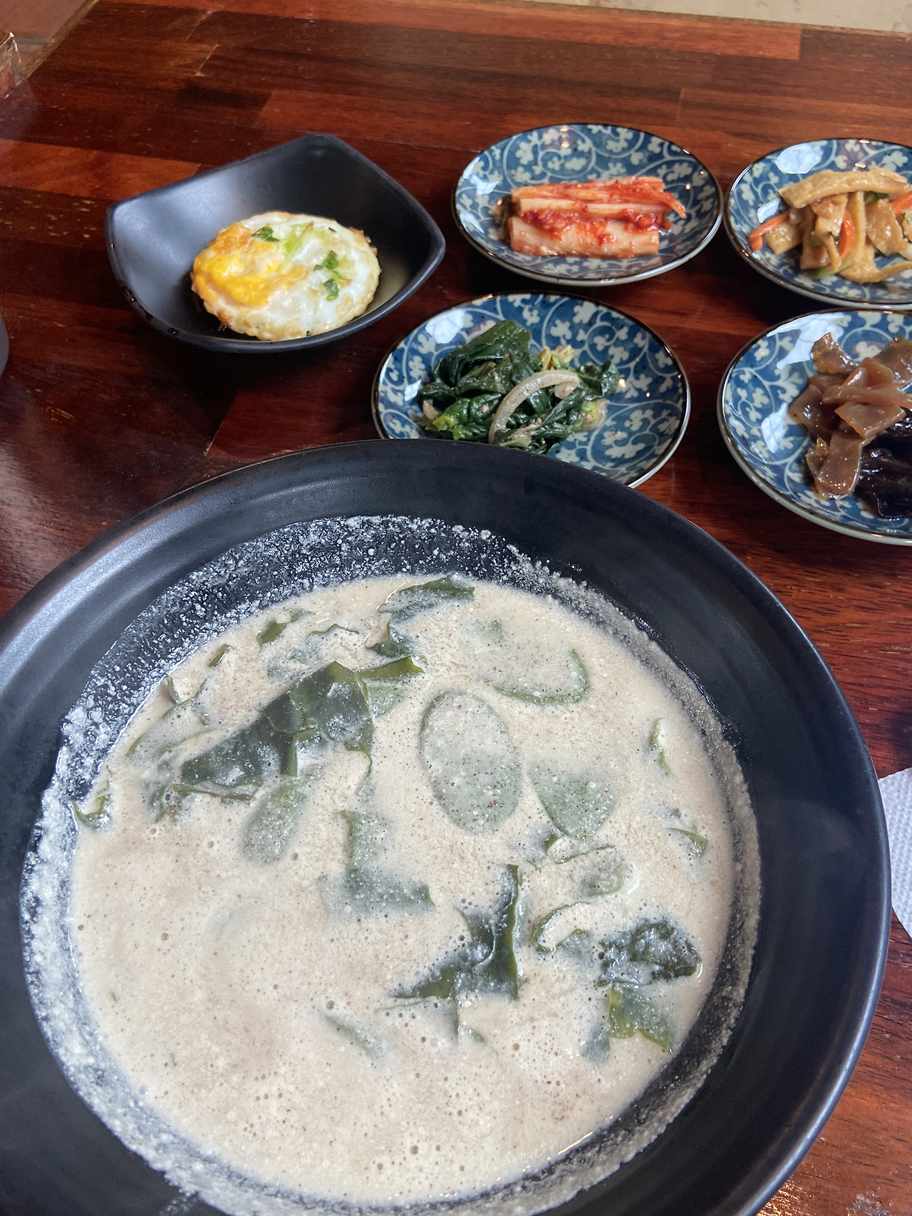리조트 주변에 뭐가 별로 없는데 밥은 어떻게 먹지? 하는 분들을 고려하기라도 한 듯, 리조트에서 10초 거리에 식당이 한 곳 있다. 바로 "오조미야"! 취다선 리조트의 조식이 이곳에서 제공되기도 하고, 점심과 저녁에도 먹을거리가 많은 곳이어서 매우 추천하는 곳이다. 조식은 세 가지 메뉴 중 선택할 수 있는데, 매년 갈 때마다 먹는 "들깨 쑥떡국"이 너무 맛있어서 서울에 와서도 생각날 지경이다. 들깨 쑥떡국을 비롯해 다양한 비건 메뉴들이 있어서 비건들이 방문하기에도 좋다.
