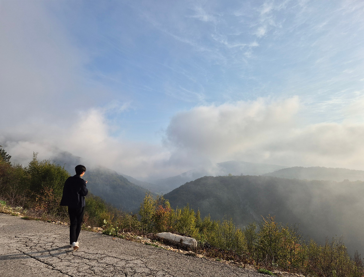 차 한 대가 겨우 지나갈 수 있을 정도로 좁은 길에, 간혹 반대편에서 차가 오면 우리는 나무 옆으로 비켜서야 했다. 깜깜한 산길을 오를수록, “엄마! 옆이 낭떠러지야!”라는 딸내미의 외침에 절로 몸이 오싹해졌다. 앞이 보이지 않는 뿌연 안갯속에서, 남편은 무섭지도 않은지 구불구불 커브길을 잘만 달렸다. 나중에 물어보니, 멈추면 안 될 것 같아서 본능적으로 달렸다나… 나는 계속해서 "자갸~ 속도 좀 줄이자! 속도 줄여~~~"라고 아이들이 들을까 중얼거리듯 남편 허벅지를 꾸욱 누르고 있었다.