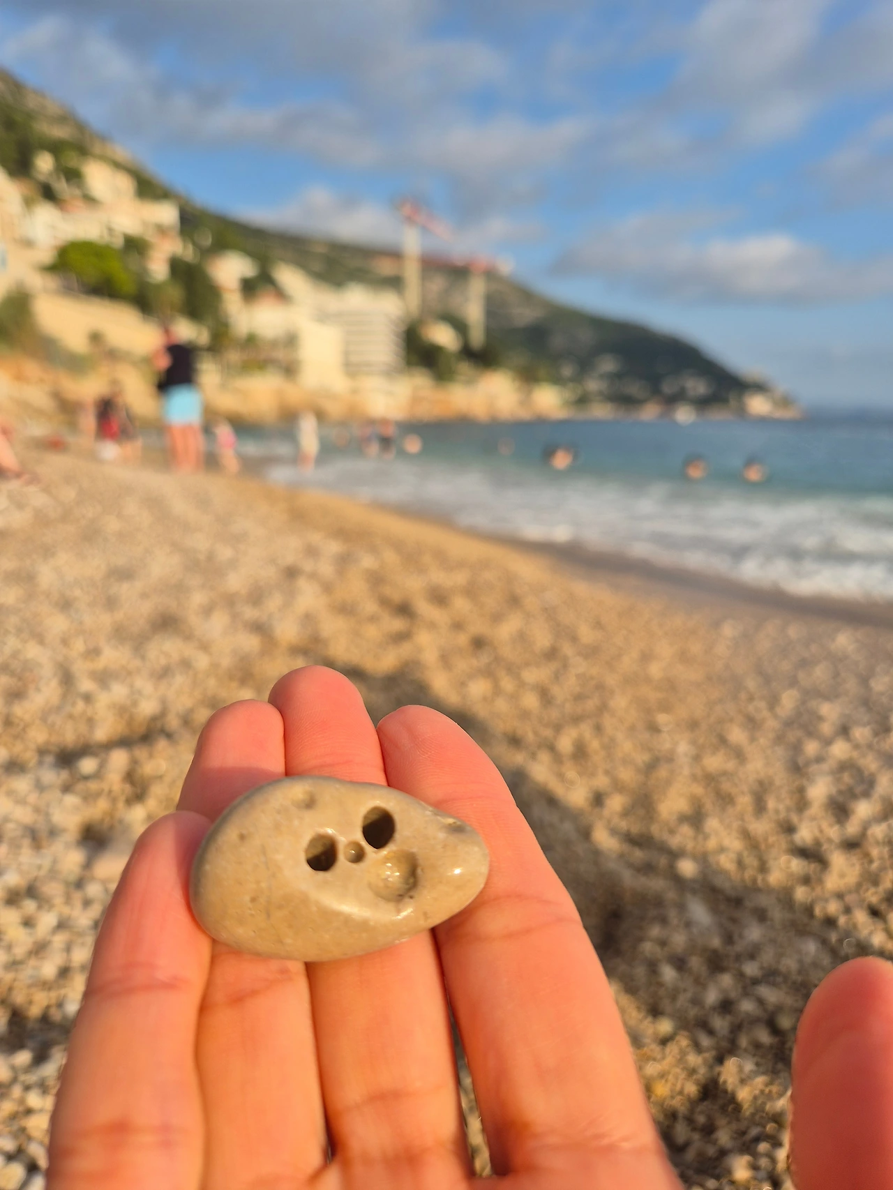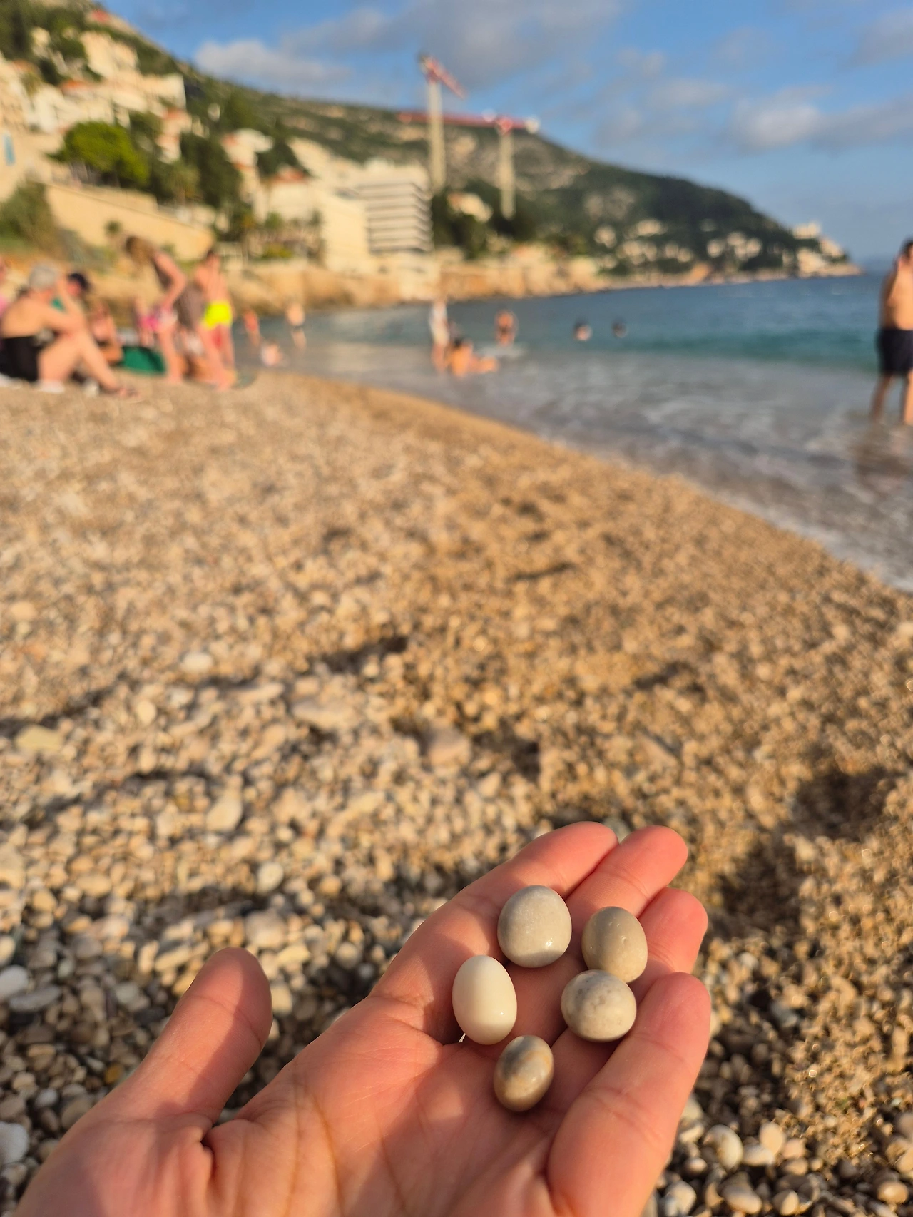 "아야 아야~" 우리는 두 발을 우스꽝스럽게 디디며 물속으로 걸어갔다. 반예비치의 해변은 상상했던 하얗고 고운 모래 대신, 동지팥죽의 새알 같은 자갈이 쭈욱 깔려 있었다. "엄마, 이것 봐요. 진짜 반들반들해요." "우와.. 이거 팥죽에 들어있는 새알 같아요!" 정말 신기했다. 색깔도 어찌나 예쁘고 고운지 예전 남해 땅끝마을을 여행하며 몽돌해변에서 동글동글한 자갈해변을 보긴 했지만, 이런 자그마하면서도 고운 빛깔의 돌들은 아니었다. 겅중겅중 걷는 건 우리 가족뿐인 건지 발바닥을 디딜 때마다 지압되는 느낌이 꽤나 아팠는데, 다른 이들은 굉장히 평온해 보였다. 우스꽝스럽게 뛰어가는 서로의 모습에 깔깔깔 웃으며 또 한 번의 이색적인 경험에 소중한 추억이 생겼다.