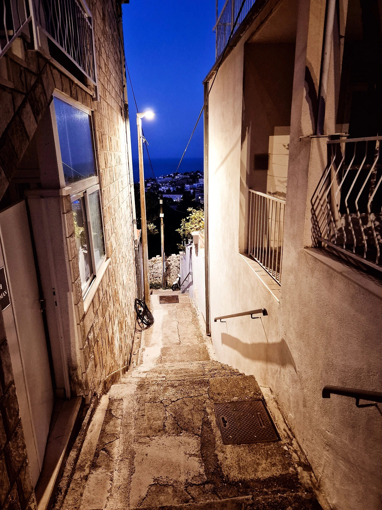 두브로브니크의 주황색 지붕들 속 불빛들이 테라스 아래로 내려다 보였다. 다행히 숙소에 주차장이 포함되어 있었고, 차에서 짐을 꺼내 좁은 골목 계단을 따라 옮기기도 그리 멀지 않았다. 바깥 테라스에서 바라본 두브로브니크의 야경은 이미 내일을 기대하며 잠들기에 충분했다.