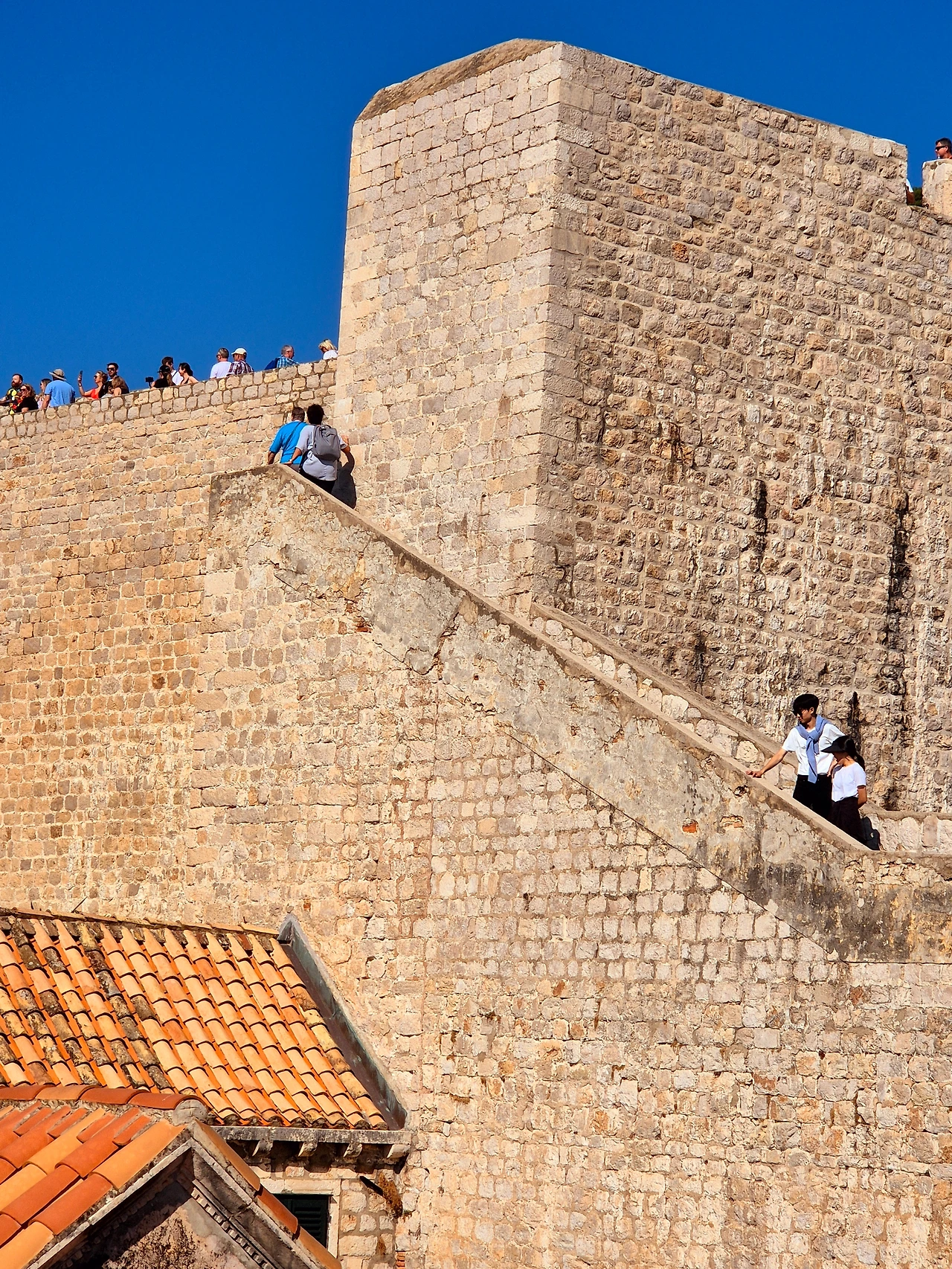 두브로브니크 성벽은 아침 일찍 올라가라는 말이 있다. 하늘이 뚫려 있어 그늘진 곳 하나 없으니 햇살이 너무 뜨겁지 않을 때 가라는 얘기다. 아침을 먹고 우린 티켓을 끊어 좁은 성벽 계단을 오르기 시작했다.