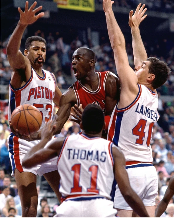 위의 공식에 더해 코트 전 영역에서 압박수비를 펼치는 이른바 '94 피트 디펜스', 그리고 상대팀의 하프코트 오펜스가 세팅되기 전에 흐름을 미리 방해하는 플레이가 바로 배드 보이즈가 '배드 보이즈'로 거듭나게 된 배경이라 할 수 있겠다.