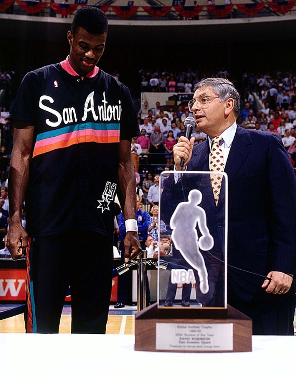 1995년 5월 24일. 샌 안토니오 스퍼스 vs. 휴스턴 로케츠 시리즈 2차전. 최대 6만 4천 명의 관중을 수용할 수 있는 어마 무시한 규모의 스퍼스 홈구장 알라모돔에서, 이제는 고인이 되신 데이빗 스턴 전 NBA 총재는 리그 전체 1위 팀의 베스트 플레이어인 데이빗 로빈슨에게 1995 정규시즌 MVP 트로피를 선사한다.